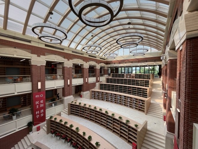 北京大學醫學部圖書館工程施工總承包項目總造價1.6億元,是既有建筑改造和拓展地下空間相結合的典型項目。在保留局部原結構的情況下,改造裝修后總建筑面積13000平方米,比原建筑增加了3320平米,由原來的63萬冊藏書量增加至110萬冊,座位數由600個增加至1200個。同時增加了24小時自習室、自動化立體書庫等。施工過程中,中國建技項目部克服了部分拆除、部分保留局部結構等形成的各專業交叉作業的技術難點,實現了中庭書山設計理念,配合裝飾效果展現出北大醫學學術風格,拱頂玻璃幕墻更能增加采光度和美觀性。