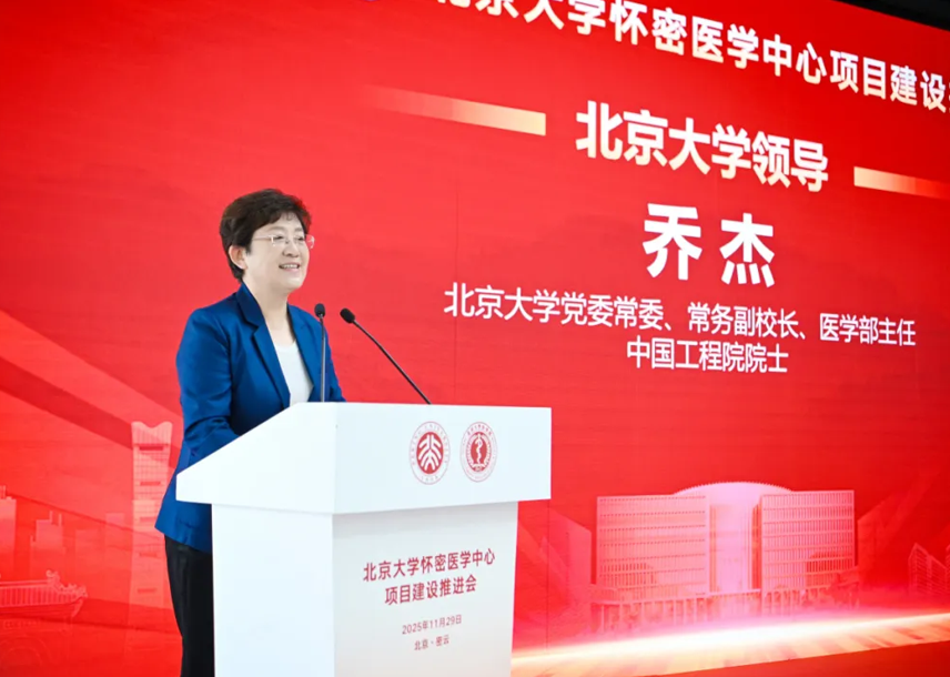 喬杰在講話中表示,站在“十四五”收官與“十五五”開局關(guān)鍵節(jié)點,北京大學懷密醫(yī)學中心作為北大醫(yī)學未來發(fā)展的重要戰(zhàn)略,承載著北大醫(yī)學城、世界醫(yī)學谷構(gòu)想。中心以創(chuàng)建世界一流醫(yī)學教育、前沿交叉研究和創(chuàng)新轉(zhuǎn)化“三個中心”為目標,助力前沿交叉研究與科研產(chǎn)業(yè)融合,積極服務(wù)首都及密云發(fā)展,為北京國際科創(chuàng)中心與國家醫(yī)藥衛(wèi)生事業(yè)注入北大醫(yī)學新動能。
