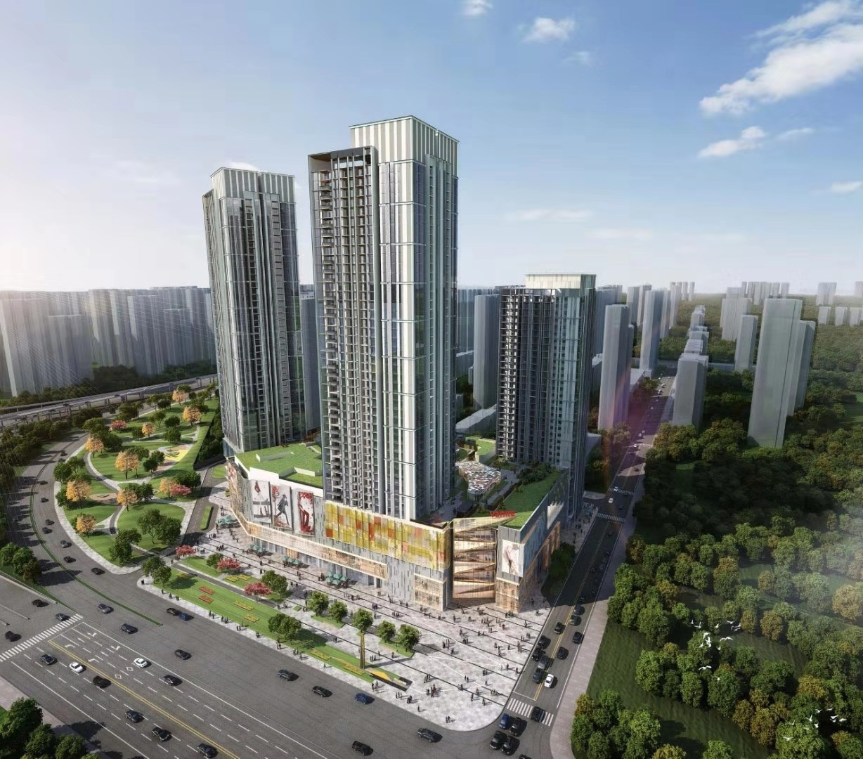 項(xiàng)目為西安萬科金域東郡項(xiàng)目三期工程,包含兩棟超高層住宅、一棟廉租房、以及一座商業(yè)綜合體。其中商業(yè)部分的浐灞印象城為萬科集團(tuán)印力西安城市公司繼龍首印象城、太白印象城之后布局西北的第三座印象城。浐灞印象城從社區(qū)生活這一公共議題出發(fā),重構(gòu)商業(yè)、生活、人之間的關(guān)系,通過15min便民圈的業(yè)態(tài)、社區(qū)生活理念以及寵物友好的空間等新功能,讓社區(qū)成為連接日常的樞紐,革新了西安城東的商業(yè)格局。商場已于2023年端午節(jié)盛大開業(yè),包含餐飲、影院、購物、兒童游樂等多種業(yè)態(tài),極大的方便了辛家廟片區(qū)居民的日常生活。廉租房已于2022年底交付政府,三棟超高層已于2023年11月30日交付業(yè)主。