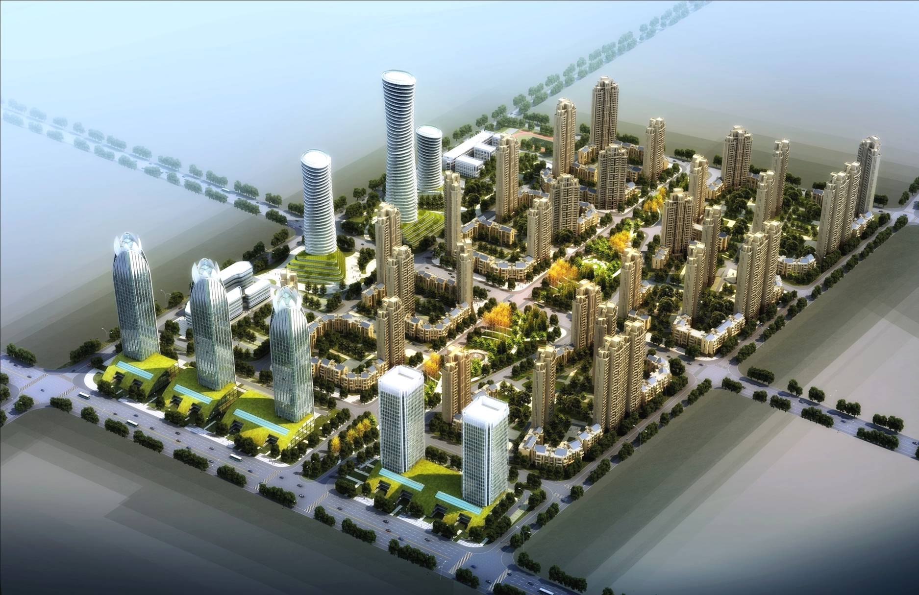 項目概述,項目用地所在區域為江夏區大橋新區的公共服務中心,承擔著為整個大橋新區提供現代服務業功能的關鍵職能,還能通過其中景觀、小品的營造和布局。